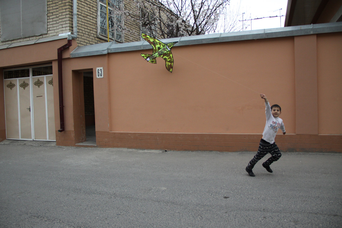 Kids flying a kite near my hotel